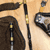 Sold:Antique Practice Set - This set was found in Newburyport, MA back in the 90s. There is no definite attribution to who made them, but a guess would be Patsy Browne. The set contains the following: A leather bag with ferrules, a set of stitched bellows, rubber blowpipe, a green velvet bag cover, a Tayloresque chanter, and a wooden carrying case. I have never tried inflating the bag, and would be hesitant to do so. The bellows are nicely made with a heavy metal hinge and a sleeve protector, but the gusset leaks. It has a threaded connector to attach the blowpipe which is made of heavy, stiff heater hose.