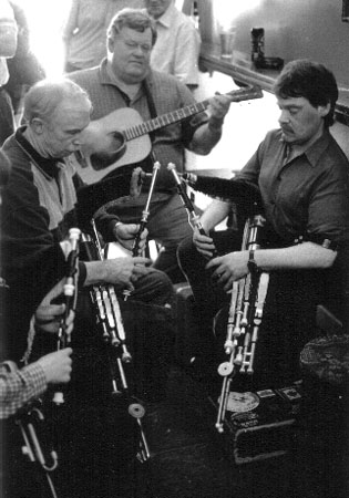I first met Seamus Ennis about sixteen years ago at a music session in Pat Dowling's pub in Prosperous,Co.Kildare. I had been a keen admirer of his music for many years before that, but had never ventured to make his acquaintance without some introduction. Alarm and delight combined when I saw him come through the door that night. However, during the course of the evening his kind and helpful remarks dispelled the fears and his offer of full assistance at any time gave great confidence and courage to a young piper. It was this willingness to impart his knowledge and skills he demonstrated many times afterwards.