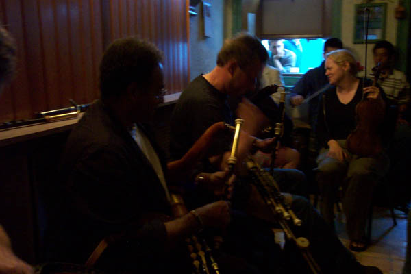 Queally's Pub and a nice session with Thomas Johnson and Peter Laban. I convinced Peter to play my D set... a rarity in itself.. but he did and seemed to enjoy it too :) It was nice to have tunes with Thomas and his friends too, good friendly bunch of people. |