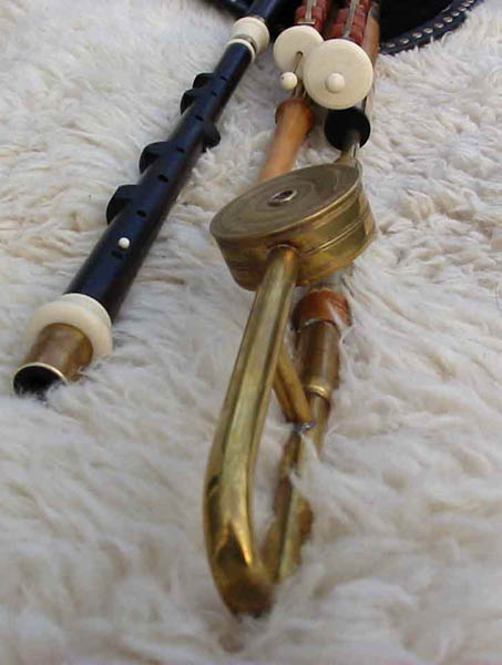 Lewis Blevins is now the custodian of the new beehive set pitched in C. He acquired it at the 2003 Pipers Gathering in North Hero, Vermont. Congratulations Lewis, they are a beautiful set! This is the same set featured in sections earlier in this page and is based on what is believed to be a Kenna masterpiece. Update: Kenna chanter, body by Ryan, mounts added later. |