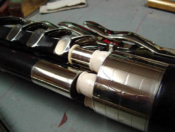 08/18/2008: Here are some photos of the latest work from the Koehler & Quinn workshops. A beautiful set in ebony, nickel siler and mammoth ivory made in the Taylor style. |