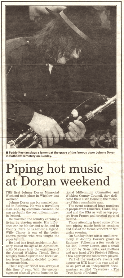 Thanks to my Mum & Dad for posting over this newspaper clipping about the Johnny Doran Weekend in Tinahely on PAGE5C