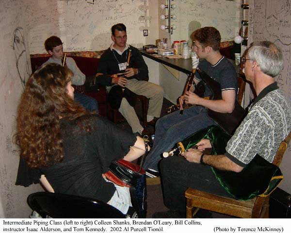 The basic lesson presented in the Advanced Piping Class, taught by Kieran O'Hare, was that you never know what you don't know 'till someone tells you. Since all of the class participants were piping at an extremely high level, the focus concentrated on the finer points of playing.
