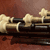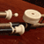 Material: Kennas - fruitwood, brass, ivory and lamb skin/sheep skin. E White - Dark boxwood, brass and ivory. Main stock bag cup is of horn.